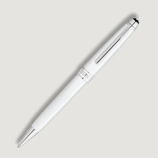 MontblancThe Meisterstück Classique Rollerball in white precious resin with elegant platinum-coated fittings, surmounted by the white Montblanc emblem inlai...
