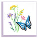 Choose the Quilled Butterfly & Wildflowers greeting card for your nature-loving friend to share sentiments of hope, happiness, and optimism. This quilled artwork features a blue, white, and black butterfly with purple, yellow, and pink wildflowers.